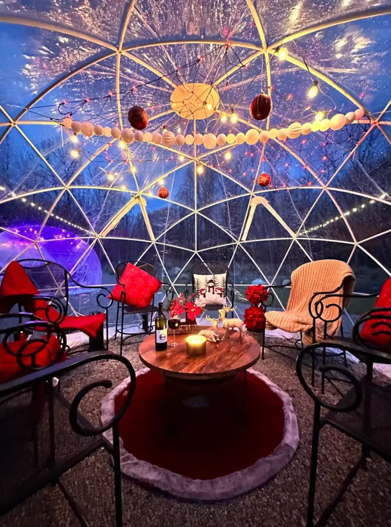 Step into your own private escape. Our igloos offer a cozy, one-of-a-kind dining experience perfect for date nights, small gatherings, or special celebrations. Each igloo is decorated with seasonal touches to make your evening magical. Enjoy handcrafted cocktails, delicious bites, and warm hospitality while you relax under the glow of your private dome.